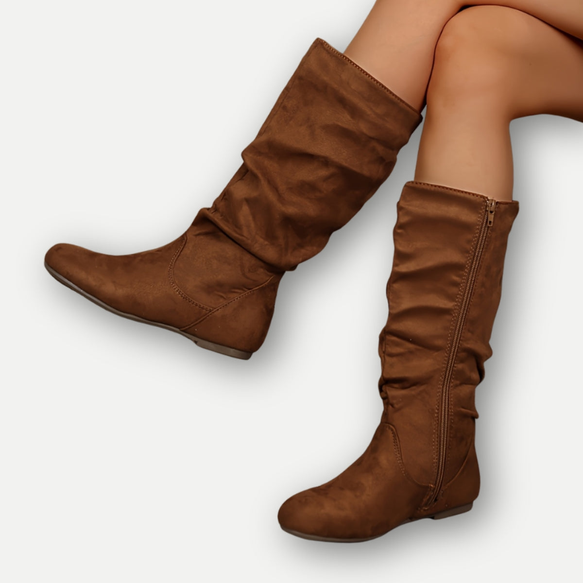 Seitlicher Reissverschluss und mittlere Stiefelhoehe in klarer, neutraler Ausführung. Kurze Beschreibung zu Form und Material.
